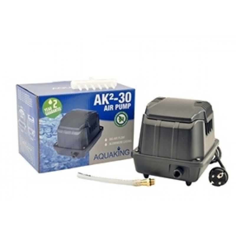 Якщо ви шукаєте аератор, ціна якого доступна, а робочі параметри оптимальні, зверніть увагу на модель Aquaking AK²-30. Аератор використовується для водойм з об'ємом води до 18 м3. Встановлюється на березі біля водойми і подає повітря на розпилювачі, які потрібно розмістити під водою (трубка і розпилювачі не входять до комплекту). Цей просий і надійний пристрій допоможе створити ідеальні умови в вашій штучній водоймі для підводних мешканців і рослин як влітку так і взимку, насичуючи воду киснем.