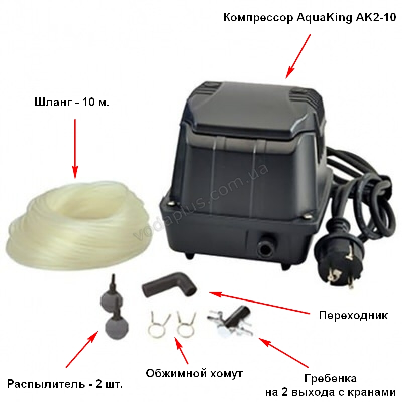 Аератор Aquaking AK²-10 - це компресор мембранного типу. Пропонована модель відрізняється низьким енергоспоживанням, практично безшумною роботою і при цьому володіє високою продуктивністю (600 л/год)