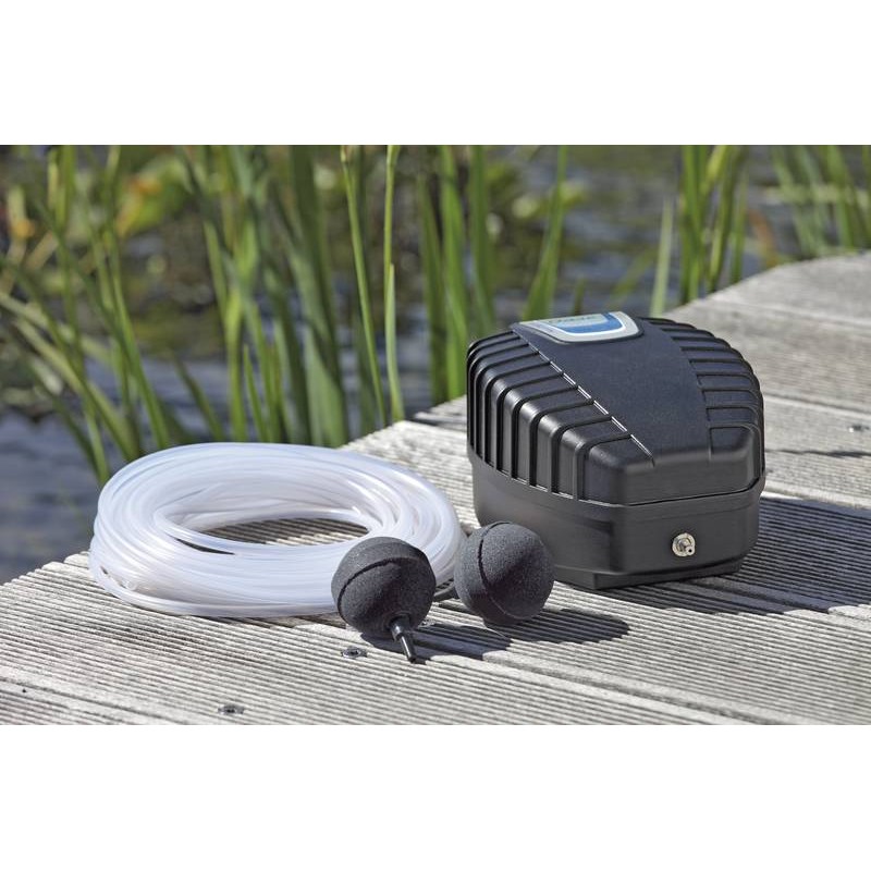 Комплект аерації для ставка від німецького виробника OASE призначений для підтримки біобалансу в водоймі шляхом додавання в воду кисню. Для всієї рослинності і живності ставків це необхідно як в спеку так і зимові морози. Робота пристрою відрізняється гранично низьким рівнем шуму.