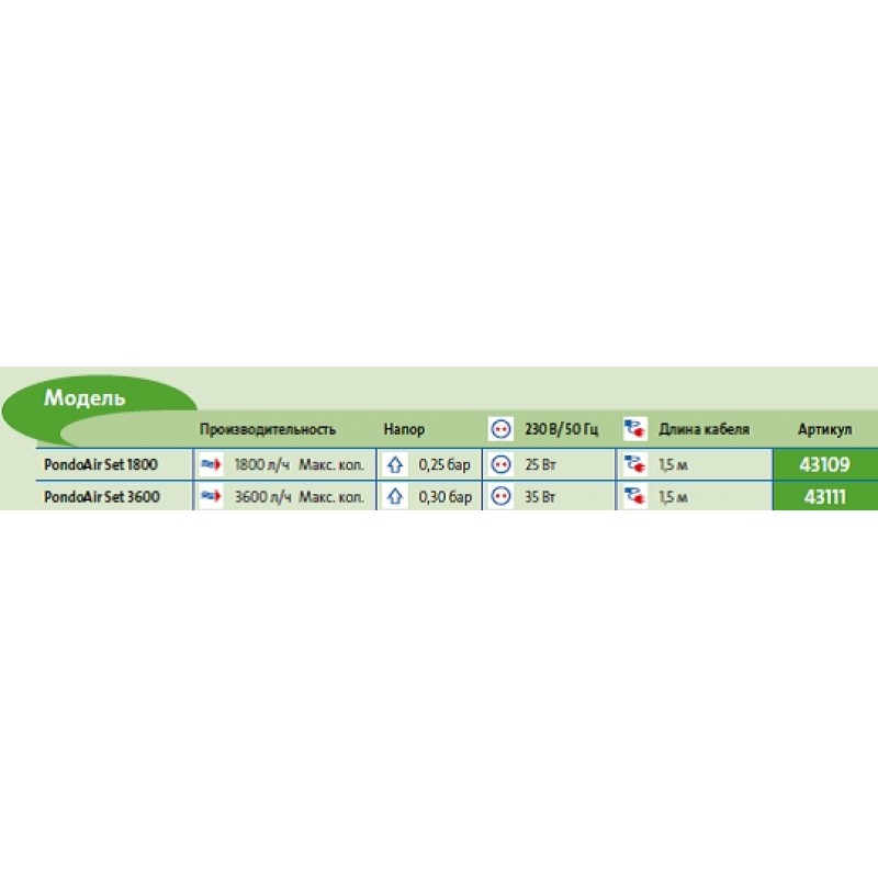 Основні показники аератора для ставка Pontec