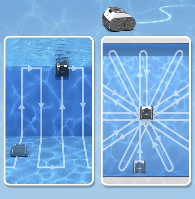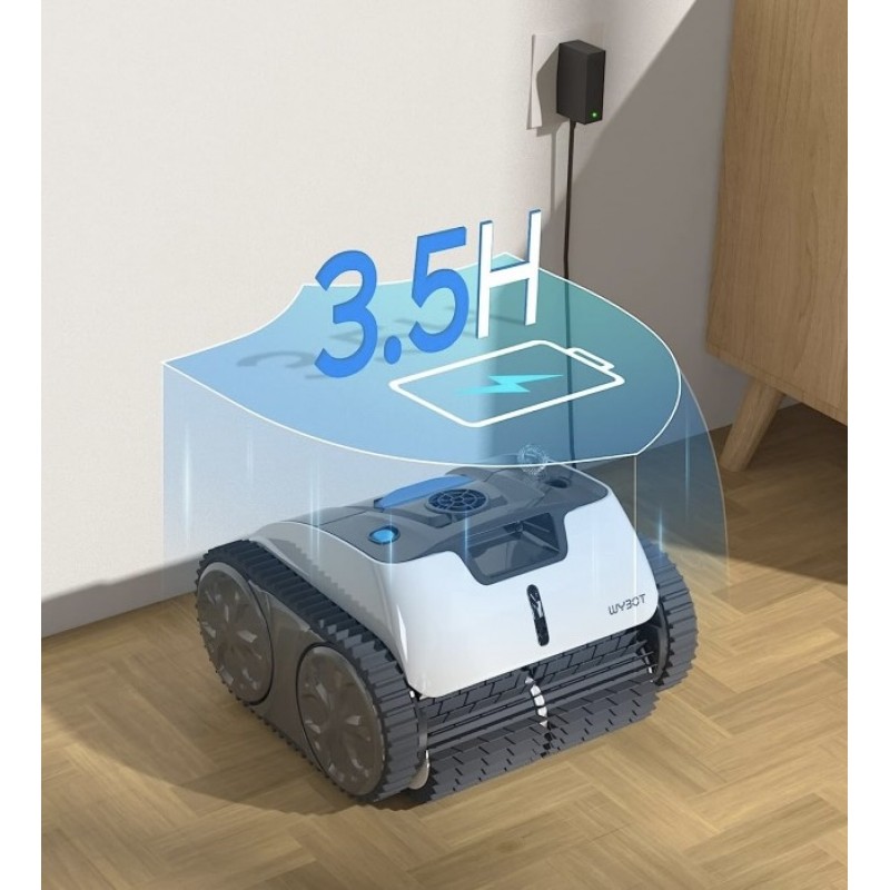 Робот оснащений гнучкими очищувальними щітками, великим фільтрувальним кошиком, світловими індикаторами та потужним повнопривідним механізмом. Завдяки потрійному двигуну, пристрій легко видаляє пісок, бруд, листя, волосся та інші забруднення. Літієвий акумулятор ємністю 9200 мАг забезпечує тривалу роботу без перерв.