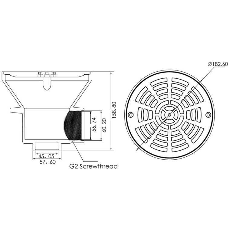 Донний злив Emaux, країна-виробник Китай. Використовується для забору води з дна та повного спустошення басейну. Пропускна здатність складає 13 м³/год. Має підключення 2 дюйми різьблення. Виготовлена з високоякісного пластику стійкого до ультрафіолетових променів та хімічних препаратів, що використовуються для дезінфекції води. Підходить для встановлення у бетонних басейнах під плитку, мозаїку.