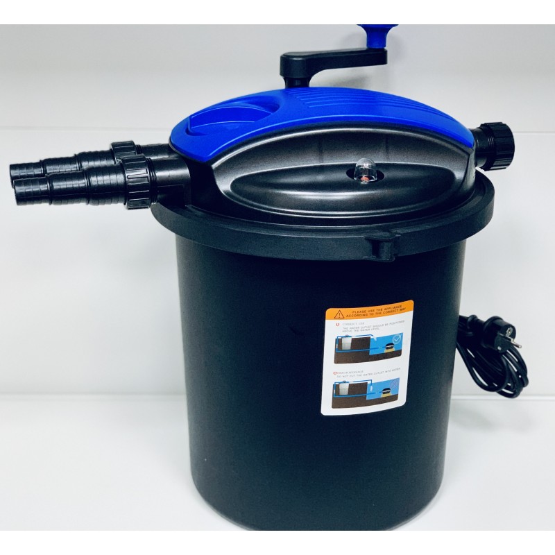 Герметичний корпус фільтра дозволяє встановити його як вище, так і нижче рівня поверхні води. Що дає можливість частково вкопати і задекорувати фільтр, а також зробити повернення води після фільтра через декоративний водоспад або струмок.