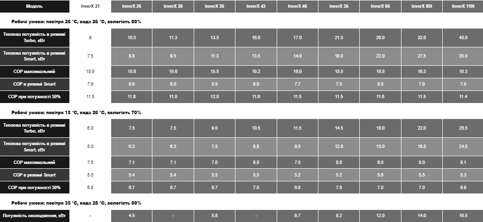 - Коефіцієнт продуктивності: 5 - 15.5