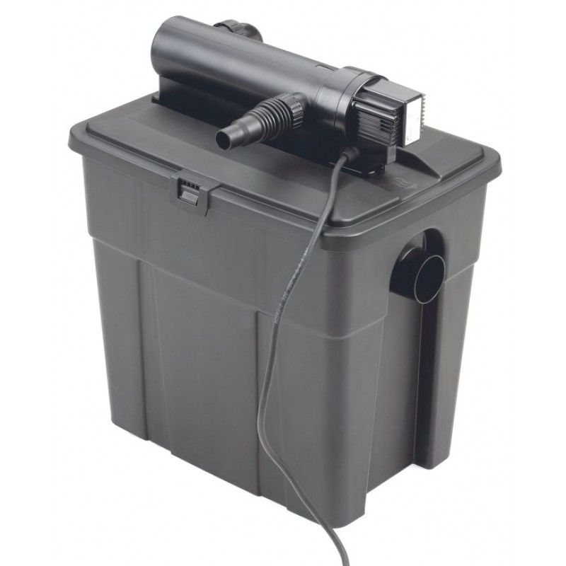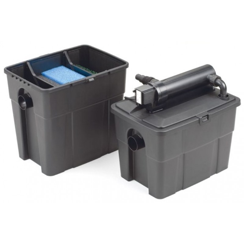 Проточний фільтр з насосом і ультрафіолетовим очисником для ставка Pontec MultiClear Set 8000 використовується для повного очищення води штучної водойми місткістю до 8 тисяч літрів. Облаштування ультрафіолетового світлового потоку з потужністю 11 ватів забезпечує повний контроль біологічного стану води, що очищається.