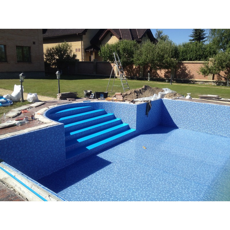 Монтаж плівки ПВХ проводиться шляхом укладання та спайки гарячим повітрям формою чаші басейну. Кількість матеріалу розраховується індивідуально, залежно від розміру та глибини басейну, а також наявності сходів. Щоб правильно прорахувати потрібну кількість матеріалів для обробки Вашого басейну, зверніться до наших спеціалістів.