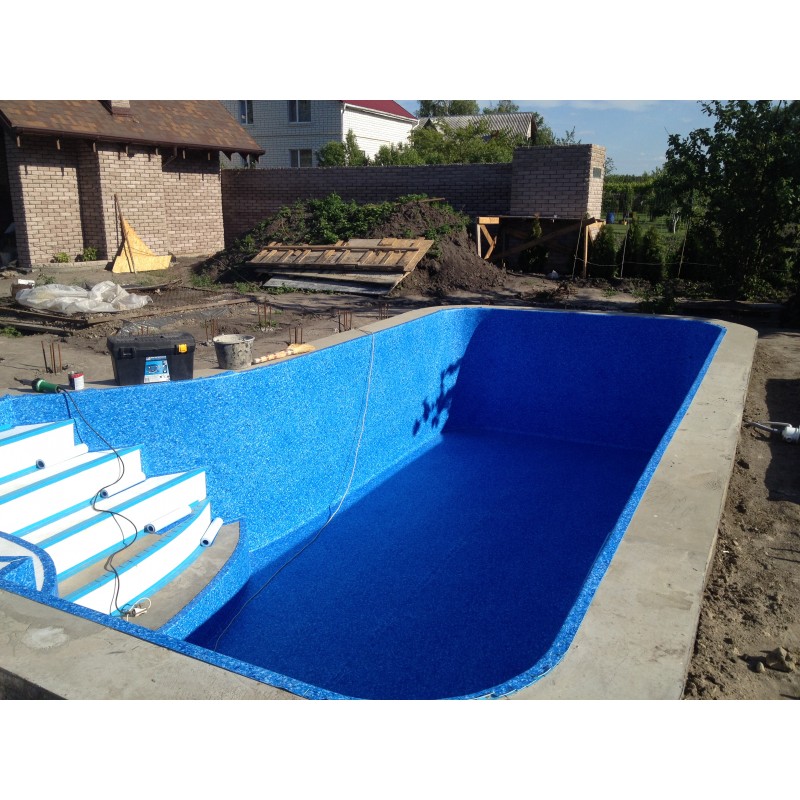 Монтаж плівки ПВХ проводиться шляхом укладання та спайки гарячим повітрям формою чаші басейну. Кількість матеріалу розраховується індивідуально, залежно від розміру та глибини басейну, а також наявності сходів. Щоб правильно прорахувати потрібну кількість матеріалів для обробки Вашого басейну, зверніться до наших спеціалістів.