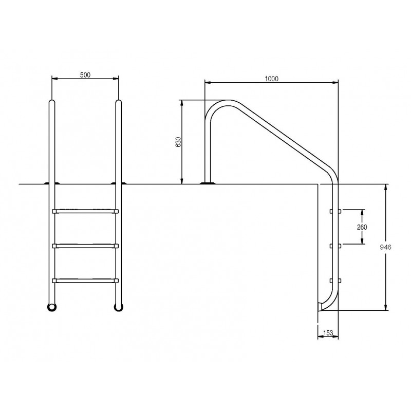 Драбина Flexinox Overflow 3 сходинки, країна-виробник Іспанія. Використовується для безпечного та зручного спуску та виходу з басейну. Виготовлена з високоякісної нержавіючої сталі AISI 304. Для протидії ковзанню ніг, сходи оснащуються анти ковзними накладками. Кожна сходинка здатна витримувати навантаження до 150 кілограм.