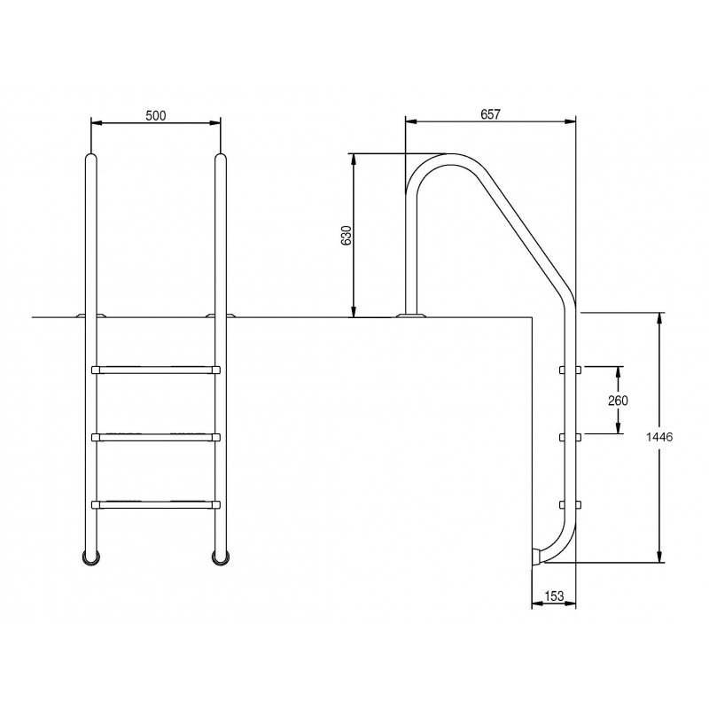Драбина Flexinox Standard 5 сходинок, країна-виробник Іспанія. Використовується для безпечного та зручного спуску та виходу з басейну. Виготовлена з високоякісної нержавіючої сталі AISI 316. Для протидії ковзанню ніг, сходи оснащуються анти ковзними накладками. Кожна сходинка здатна витримувати навантаження до 150 кілограм.