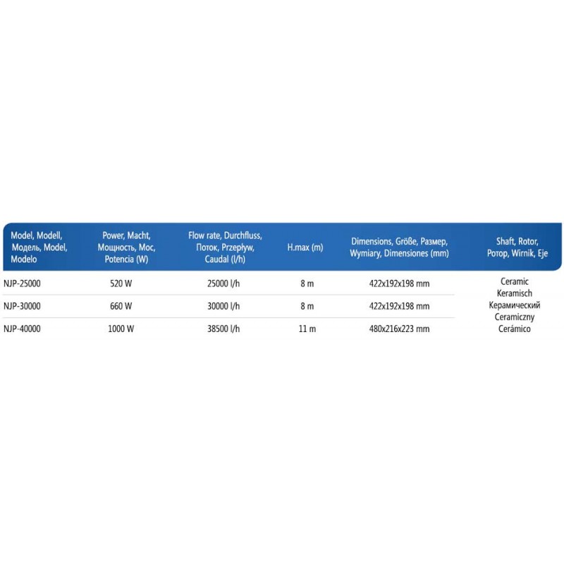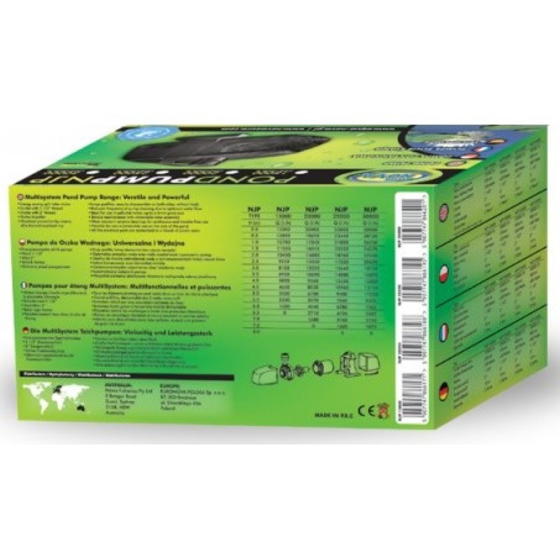 Насос для ставка AquaNova NJP 25000 використовується для подачі води на фонтан, водоспад або струмок, а також як циркуляційний насос в фільтраційних системах Вашої водойми. Продуктивність насоса становить 25000 л/год при електроспоживанні 520 Вт. Максимальний підйом стовпа води 8 м. Насос оснащений перед фільтром від попадання сміття більше ніж 6 мм. Підключення даного насоса проводиться за допомогою напірно-всмоктуючого шланга 20-40 мм. Установка насоса може бути як під водою, так і на суші.
