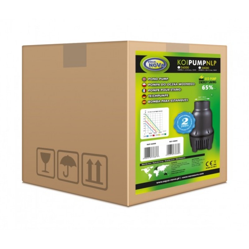 Насос для ставка AquaNova NLP 30000 рекомендується використовувати для подачі води в великих обсягах на фонтан, водоспад або струмок, а також ідеально підходить для самопливних фільтраційних систем водойми. Перевагою даного насоса є розмір підключення подачі води 110 мм. Продуктивність насоса становить 30000 л/год при електроспоживанні 200 Вт. Максимальний підйом стовпа води 4 м. Насос оснащений перед фільтром від попадання сміття більше ніж 6 мм. Тип установки насоса - погружний.