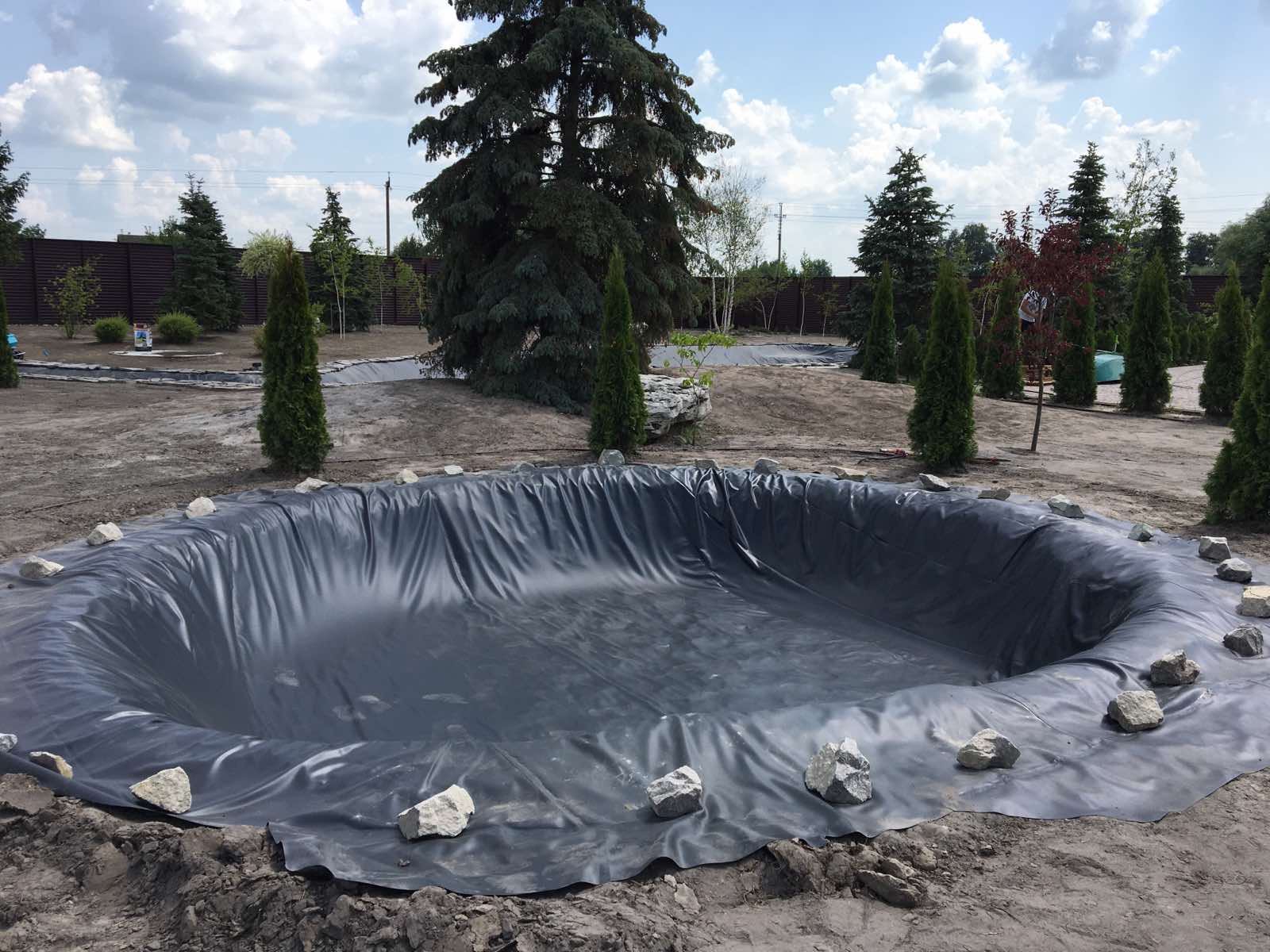 Щоб уберегти плівку від механічних пошкоджень (коріння дерев, бур'яни, грудки землі), рекомендується використовувати геотекстиль (підкладка під плівку), який Ви також можете купити в нашому інтернет магазині Водаплюс.
