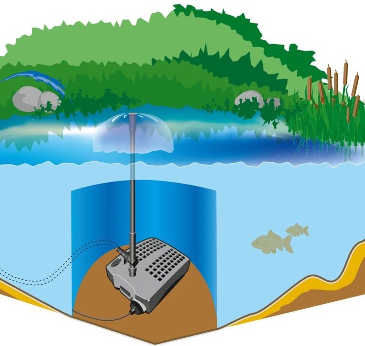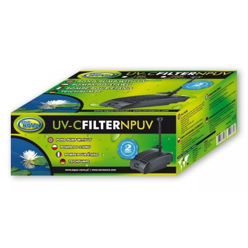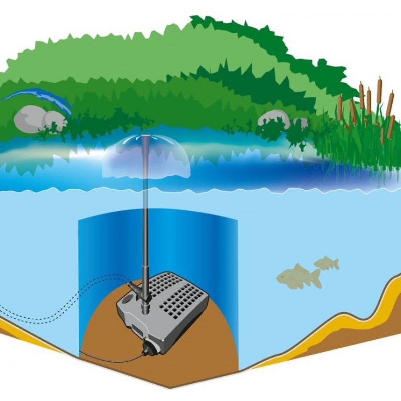 Підводний фільтр для ставка виробництва польської компанії AquaNova забезпечує комплексну очистку штучного водоймища об'ємом до 4 тис. Літрів. У комплект входить вбудована ультрафіолетова лампа потужністю 9 Вт. Установка фільтра виробляється на дні ставка і дозволяє зберегти дизайн навколо водойми. Вода після фільтрації подається на декоративний фонтан або струмок.