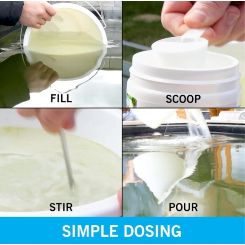 Додайте 30 г (одну мірну ложку) порошку на 900 літрів води.