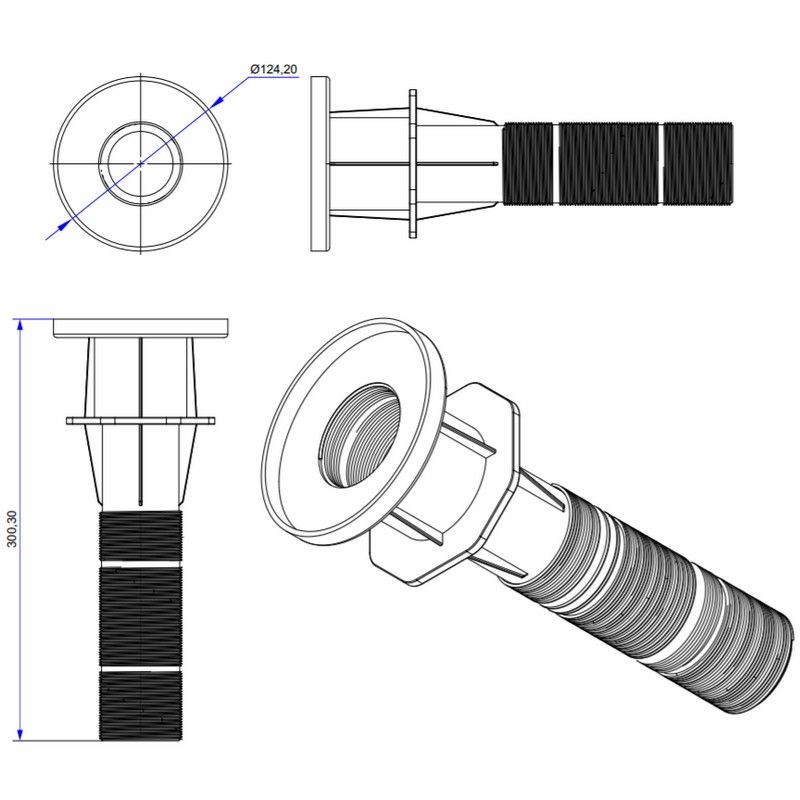 Прохід в бетон для басейну використовується для забезпечення зручного монтажу форсунки і подальшого безпроблемного виконання її ремонту. Цей елемент закладається на стадії спорудження басейну і дозволяє уникнути руйнування або стиснення форсунки бетоном. Виріб являє собою трубку, наділену, з одно боку, внутрішнім різьбленням для установки форсунки, а з іншого - посадковим місцем під вклейку трубопроводу, що з'єднує форсунку з насосним обладнанням водойми. Прохід в бетон для басейну виготовлений з високоміцного пластика, стійких до дезінфікуючих засобів. Вироби можуть мати деякі конструктивні відмінності, що пояснюється особливостями різних типів чаш басейнів та властивостями плитки і плівки, які використовуються для обробки водойм