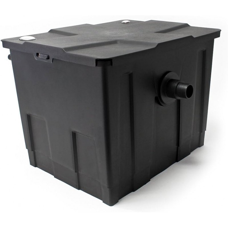 Фільтр SunSun CBF 350 підходить для ставків об'ємом до 12 000 л, забезпечуючи надійну механічну та біологічну очистку. За допомогою насоса вода подається на фільтр, проходить очистку та повертається в ставок самопливом.