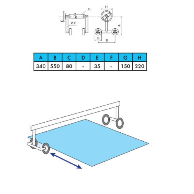 Ролета намотуюча Vagner pool 3,7-5,4 м (мобільна) двостороння