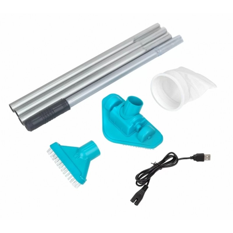 Ручний пилосос Kokido Telsa 05 ідеально підходить для басейнів Bestway и Intex. Повністю автономний: працює від вбудованого акумулятора, що заряджається, не потребує дротів, під’єднання до мережі, шлангів. Має щітку із фільтром, що прискорює очищення дна басейну. Місткість фільтра: 420 мл. У комплекті: 5-секційна штанга 170 см, щітка та сачок.