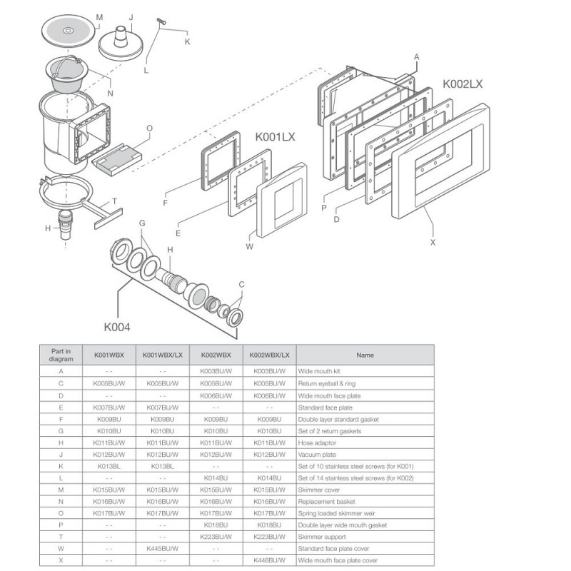 Скімер для басейну Kokido, країна-виробник Китай. Використовується для забору верхнього шару води басейну на фільтрацію та очищення її від сміття. Пропускна здатність скімера становить 5 м³/год. Має підключення 1½ дюйми внутрішнє різьблення. Виготовлена з високоякісного пластику стійкого до ультрафіолетових променів та хімічних препаратів, що використовуються для дезінфекції води. Підходить для встановлення у бетонних басейнах під лайнер (ПВХ плівку), поліпропілен, скловолокно. Має в комплекті заставний елемент з латунними вставками, корзину для збору сміття, обтискний фланець, нержавіючі гвинти та дві прокладки для герметизації.