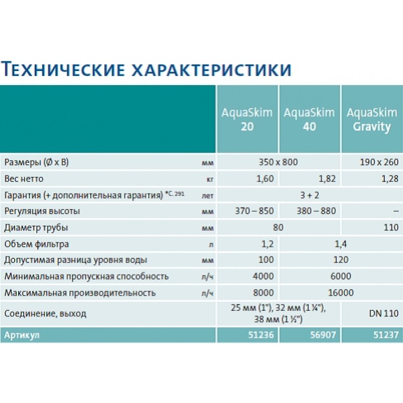 Основні параметри Oase AquaSkim 40