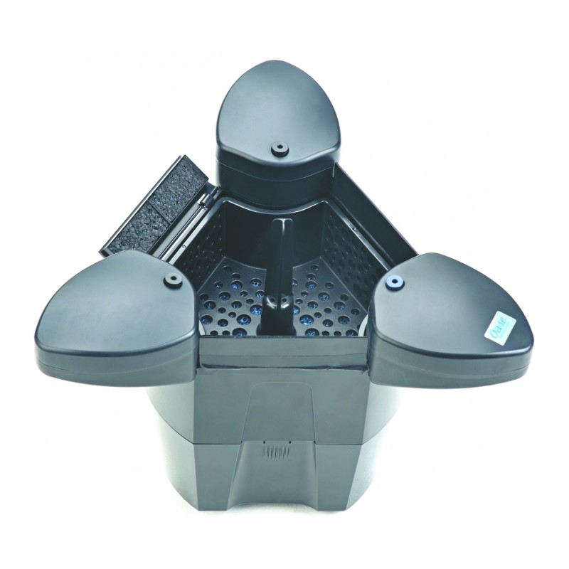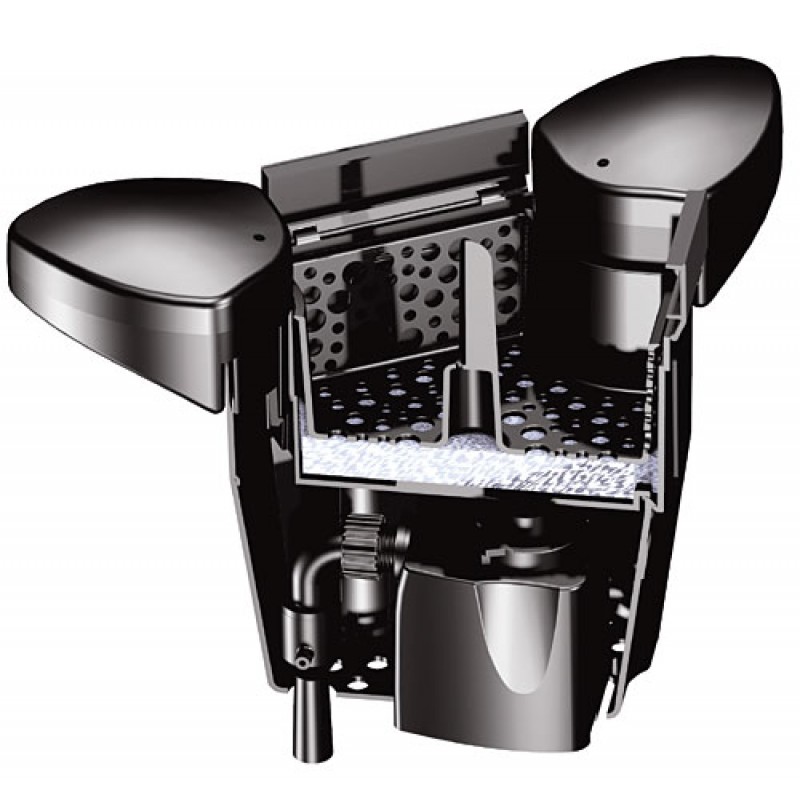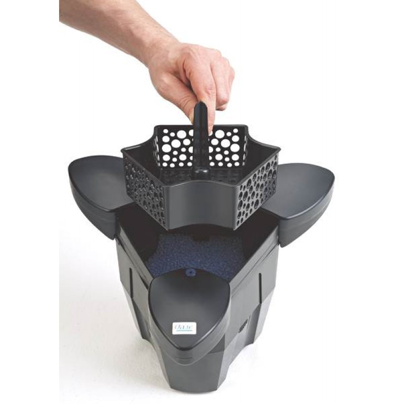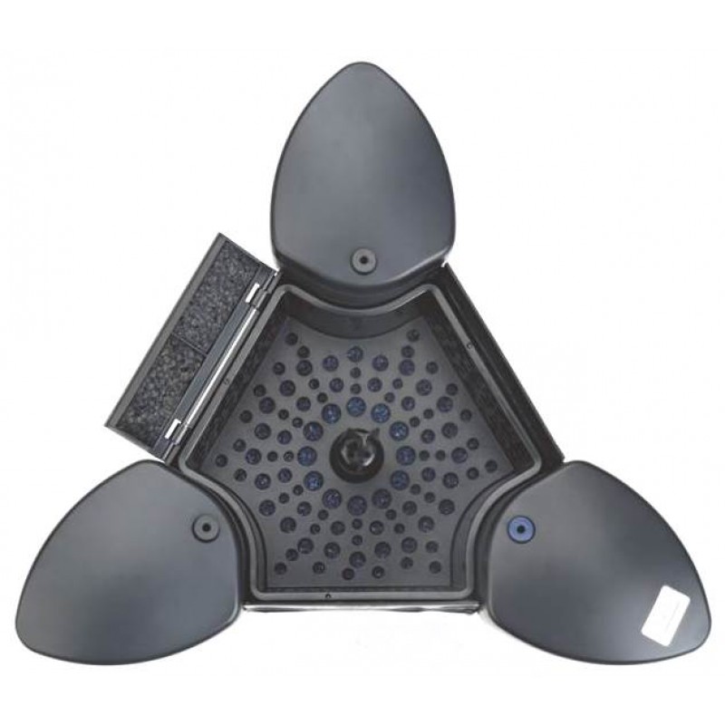 Для зберігання сміття скімер має власну ємність з об'ємом 0,9 літрів. Органіка завдяки скімерній очистці, не потрапляє на дно озера, і біологічний комплекс штучного ставу діє ефективніше.