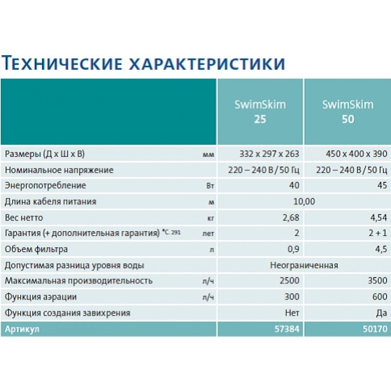 Запобігаючи забрудненню, скімер паралельно збагачує воду киснем за допомогою вбудованого інжектора. Потужність аерації скімера становить не менше 300 літрів на годину. Циркуляційний насос прокачує через скімер 2500 літрів на годину, створюючи на поверхні шар очищеної води.