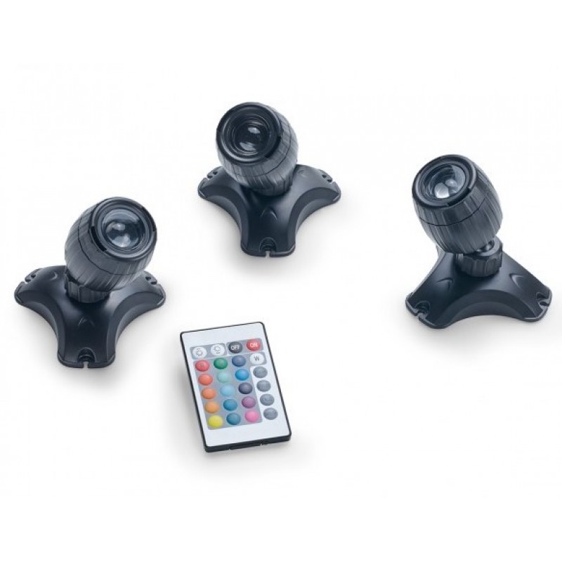 PondoStar LED RGB Set 3 розроблений для використання в невеликих ставках, водних об'єктах та для м'якого освітлення садових елементів. Кожен прожектор споживає всього 2 Вт потужності і забезпечує повністю керовану функціональність RGB, яку можна реалізувати за допомогою доданого портативного пульта дистанційного керування.
