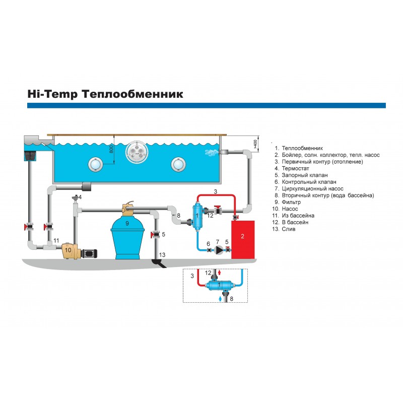 Теплообмінник Pahlen, що відрізняється високою надійністю та ефективністю, служить для підігріву води в басейні, шляхом пропускання через себе рідини, нагрітої різними опалювальними системами.