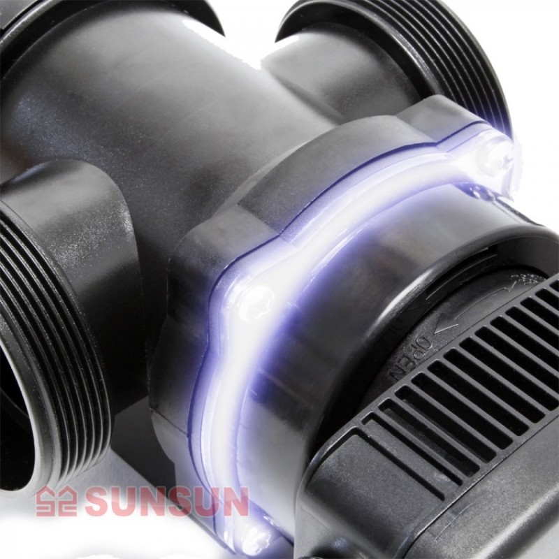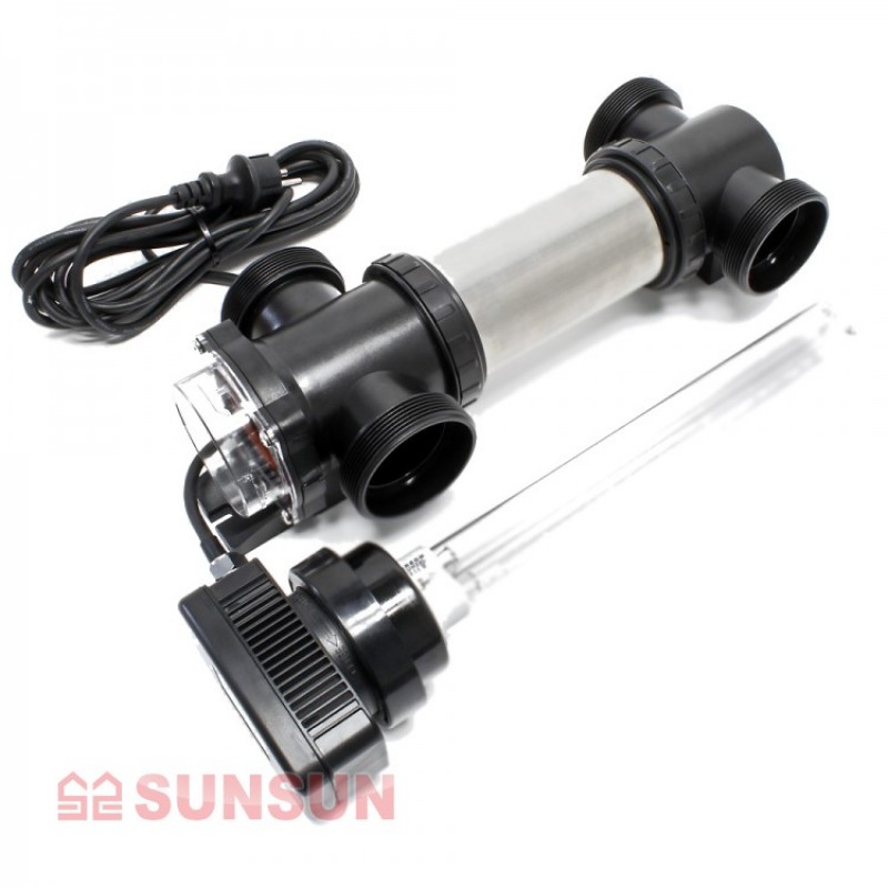 Основна відмінність стерилізаторів SunSun (Grech) CUV полягає в його будові - вода при проходженні через стерилізатор рухається по спіралі, яка розташована навколо колби. Внаслідок чого збільшується час впливу ультрафіолетових променів на прохідну воду.