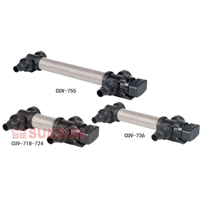 Ультрафіолетовий стерилізатор SunSun (Grech) CUV-755 - призначений для стерилізації води у водоймі об'ємом до 55000 літрів, шляхом обробки її UV-випромінюванням, яке створюється УФ лампою потужністю 55 Вт.
