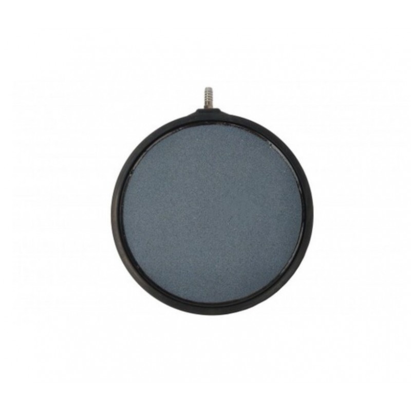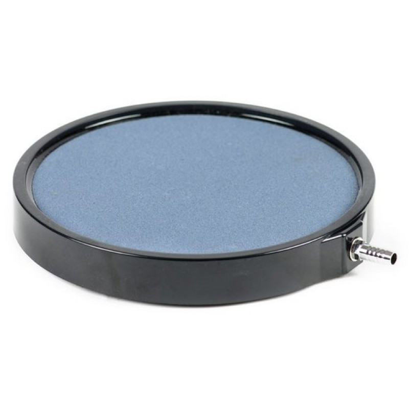 Повітряний розпилювач AquaKing Air Stone Disk c пропускною здатністю 2880 л/год. Використовується в аераційних системах водойм. Не вимагає грузила, так як завдяки своїй конструкції легко тримається на дні. Для використання розпилювача потрібен повітряний насос (аератор) і шланг для підключення.