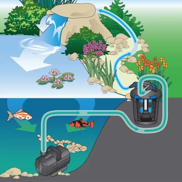 Для правильного функціонування і приємного зовнішнього вигляду, воду в декоративній водоймі варто постійно підтримувати в належному вигляді. На даний момент існує безліч способів очищення водної маси в штучному ставку. Одним з таких способів є очищення водойми за допомогою напірного фільтра.